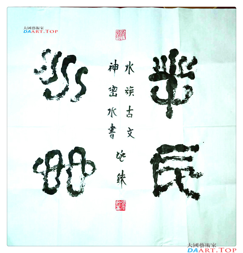 水文书法作为一种艺术,顺新时代潮流,性传统之正道,承载着时代的精神气象,水文书法艺术是属于视觉艺术,同时这种艺术作为中国传统文化的代表离不开传承,中国几千年的水族文化史和水书为人们留下了丰厚的财富,张兆铼作为国家非物质文化的传承人在继承传统的基础上发展和创新,张兆铼的书法作品法度严峻、气势磅礴,具有端庄之美,阳刚之美,雕塑之美,诗歌之美,化瘦硬为丰腴雄浑,结体宽博而气势恢宏,骨力遒劲而大气厚重,结构方正茂密,笔画横轻竖重,笔力浑厚,挺拔开阔雄劲。结体谨严,清丽俊秀,运笔布局充满古拙之趣。既以卓越的灵性系之,境界自然瑰丽;又以坚强的魂魄铸之,境界自然雄健;再以其丰富的人生育之,境界自然阔大庄伟.水文书法是心迹,也是时代精神气象的载体。