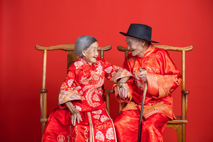 清方村的耄耋夫妇胡金玉、何金凤也拿到了结婚照,令现场所有人动容。两位老人共同走过了76年风风雨雨,是比人们常说的金婚更加珍贵的钻石婚。陪同他们参加活动的儿媳全秀珍说,老两口育有一儿四女,大女儿75岁,小女儿也60多岁了,如今五代同堂。二老感情非常好,而且身体也很棒,一直在自己的小屋里相依相伴,自己洗衣做饭,平时还种些蔬菜,家里喂养了几十只鸡。这次拍了结婚照,也算是圆了一个他们想都没想过的梦,让他们的爱情留下了光影的记录。
